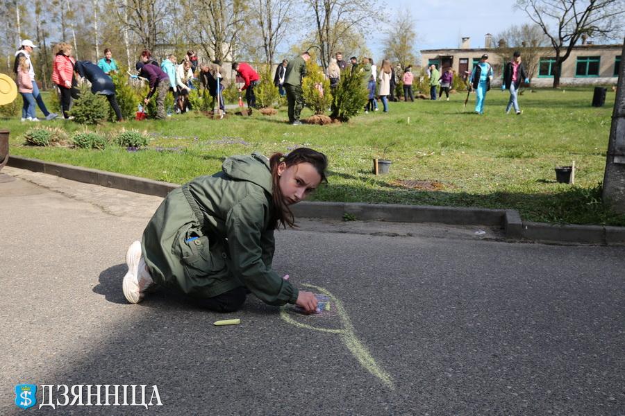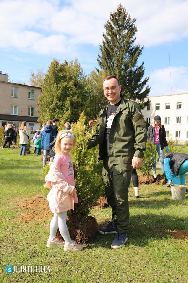 Во время трудового десанта было высажено множество цветов и около ста деревьев. Щучинский лесхоз предоставил для этих целей туи, ели, сосны, дубы, курильский чай и можжевельник казацкий, а Гродненский зональный институт растениеводства НАН Беларуси обеспечил плодовыми деревьями – черешней, абрикосом, яблонями и сливами.