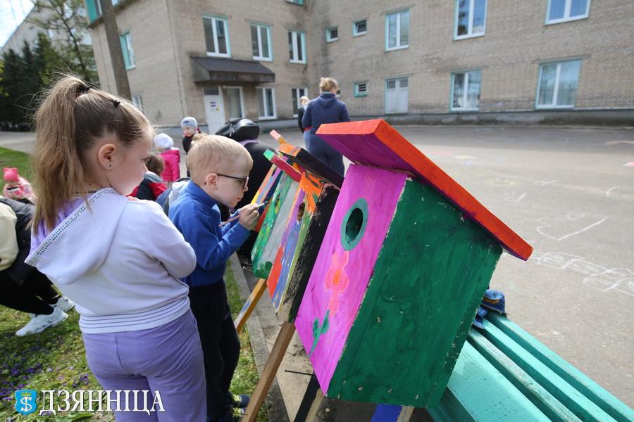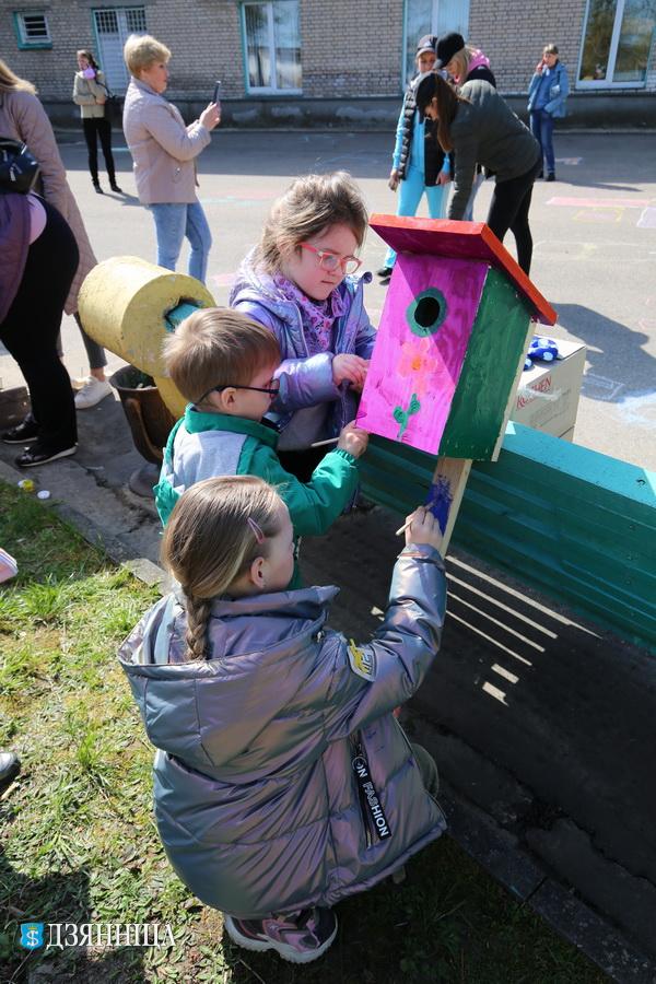 А пока взрослые работали, дети с удовольствием рисовали мелками на асфальте. Все, кто проявил свой талант, получили в подарок сладости и игрушки. Ещё одной креативной ноткой субботника стала совместное расписывание скворечников гуашью. Родители со своими кровинками создали на домиках для птиц очень весёлые и яркие узоры. По их улыбкам было видно, что необычная идея пришлась всем по душе.