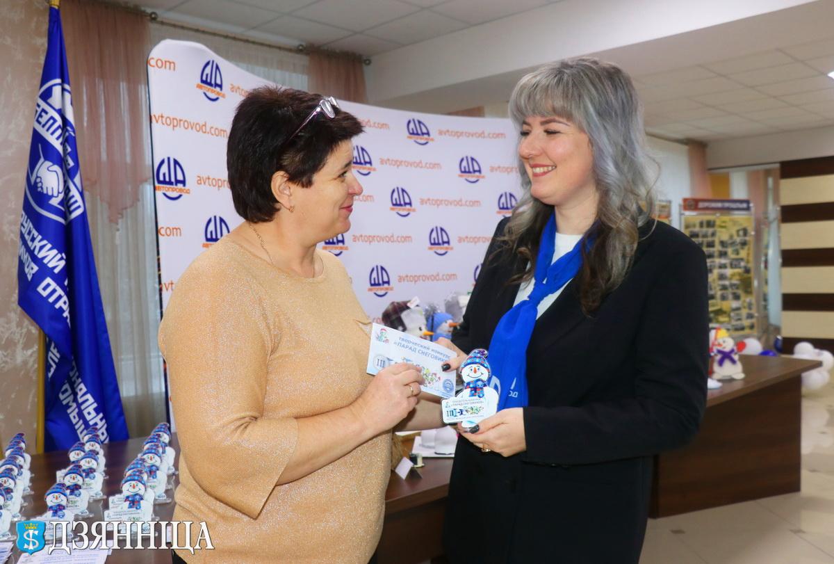 … Буквально сегодня «Парад Снеговиков» передислоцировался в актовый зал, где заместитель директора по идеологической работе Татьяна Синкевич и председатель профсоюзной организации предприятия Ольга Кириллова собрали всех авторов творческих работ, чтобы подвести итоги конкурса и вручить победителям заслуженные награды. Тем не менее, сувенирные фигурки весёлых снеговичков и денежные премии получили все без исключения участники конкурса, среди которых, кстати, были и представители сильного пола. Но вот в лидерах оказались всё-таки рукодельницы-женщины.