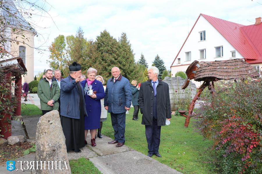 Интересной получилась встреча с настоятелем храма Яна Крестителя ксендзом Станиславом Пытелем, который на примере территории костёла показал, какую эстетику можно привнести в обустройство территории, ощутимо помогает в воспитание населения. И, конечно же, в Год исторической памяти не могли члены делегации пройти мимо памятника в честь земляков – защитников Родины. Минутой молчания почтили их светлую память, возложили к мемориалу цветы.