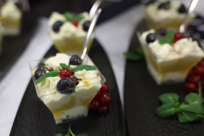 Среди представленных блюд были тартар из сельди с сыром в валоване, профитроли с икрой и лаймом, креветка в глазури с пряным кремом, рулетик из баклажанов на миндально-сырном чипсе, корзиночки из гречневой муки с мягким сыром, фисташковый тарт с кремом, облепиховым спонжем и лесными ягодами, салат из печеной свеклы с мягким сыром и миндалем, разнообразные чизкейки, сырники и многое другое. Были и любимые взрослыми и детьми сырки в белом шоколаде, которые легко повторить дома. Эти изысканные и полезные блюда имеют все шансы прочно обосноваться не только на столах белорусских здравниц, но и на призовых пьедесталах международных конкурсов.