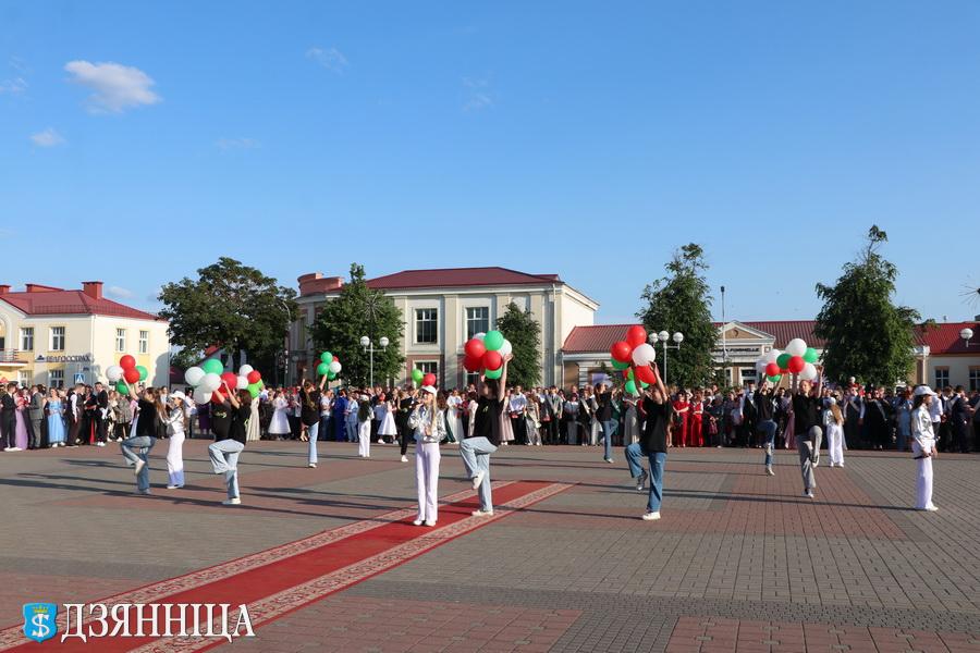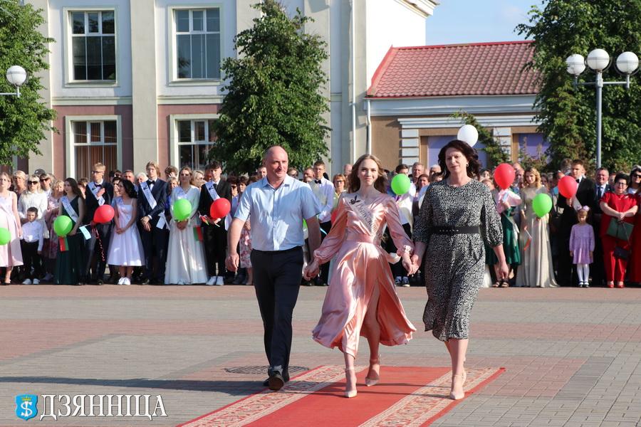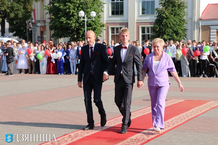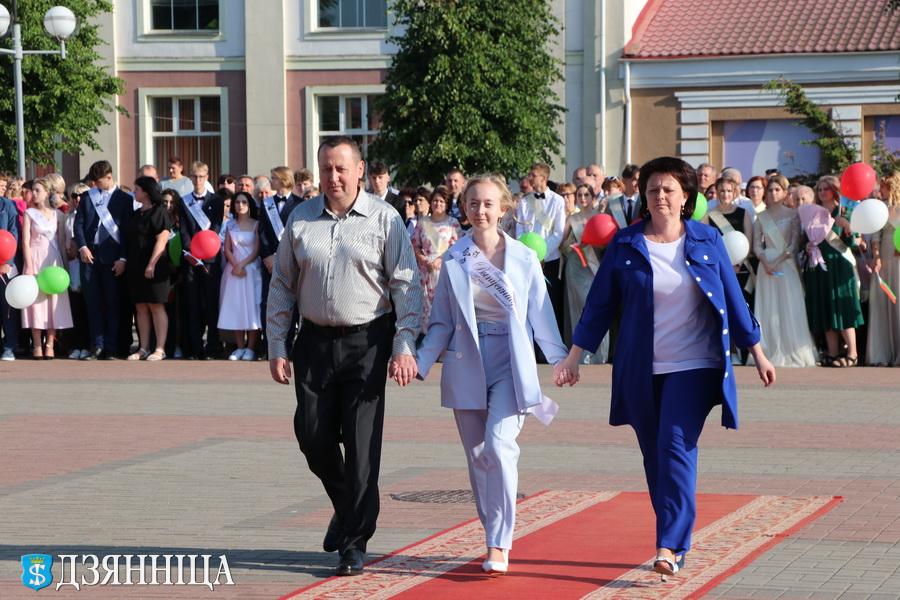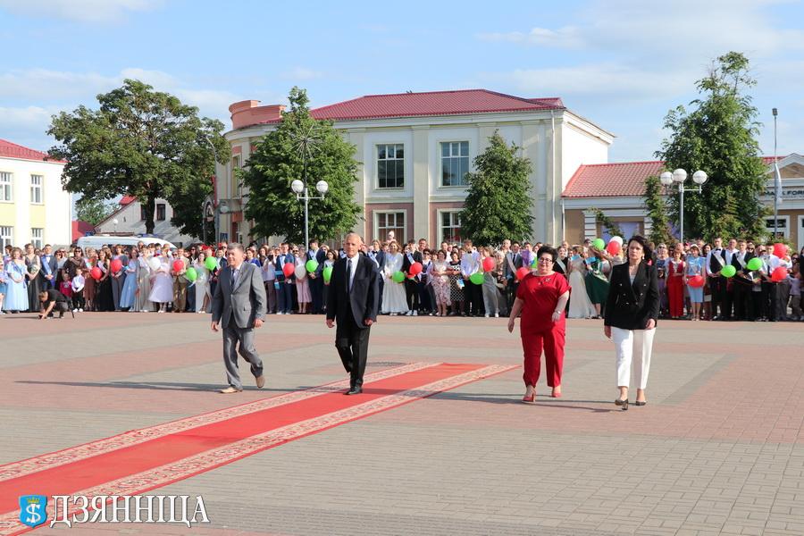Дружно исполняли Государственный гимн Республики Беларусь выпускники, почётное право поднять Государственный флаг нашей страны было предоставлено гимназисту Виталию Олихверу и выпускницам СШ № 1 Анастасии Будило, средней школы № 2 Юлии Юровой и средней школы № 3 Ксении Полубятко.
