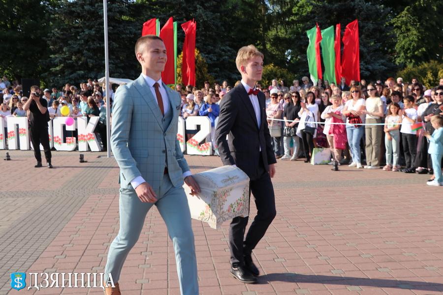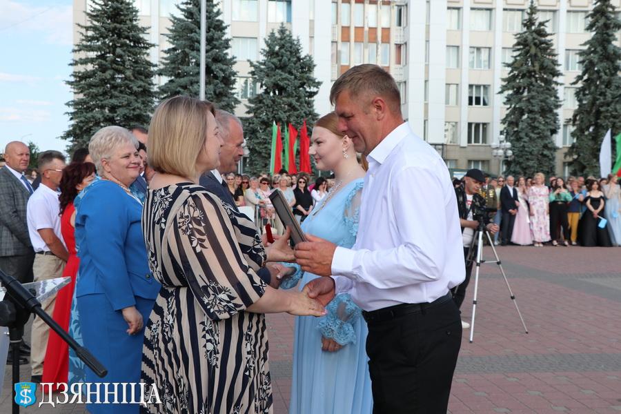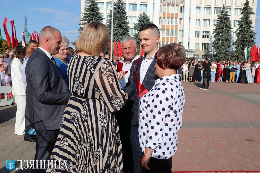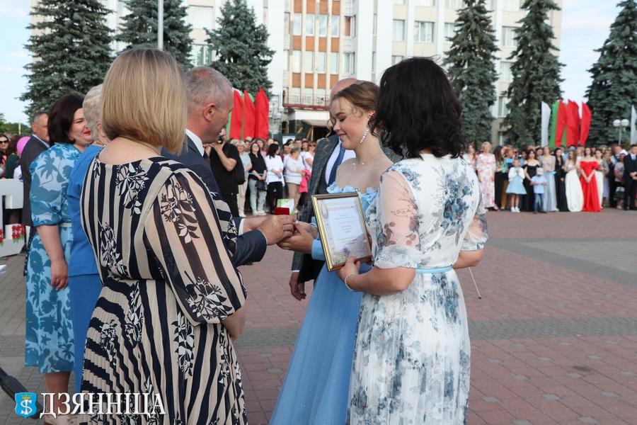 Впервые на городской площади были вручены Благодарственные письма выпускникам за активное участие в районных мероприятиях, отличные результаты участия в областных, республиканских, международных конкурсах. Выпускнику гимназии Никите Трафимовичу, выпускнице средней школы № 3 Валерии Липской и выпускнице средней школы № 2 Анастасии Пуцко их вручили Татьяна Тюсина и Павел Тарчинский.