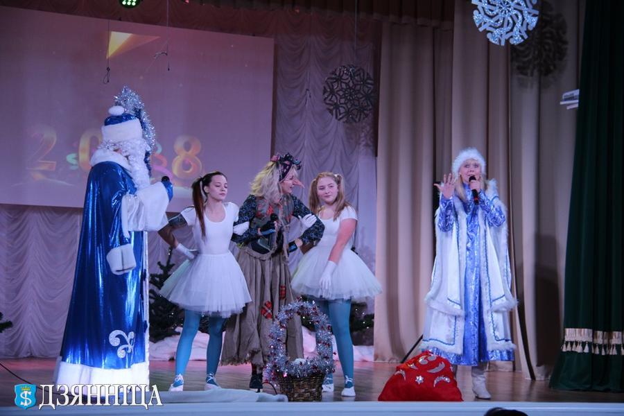 Уже у входа гостей встречали Дед Мороз со Снегурочкой и сказочные персонажи. Ребята рассаживались в зале, чтобы принять участие в музыкально-игровой программе "Сон в руку, или Невероятные новогодние приключения". Перед началом представления мальчишек и девчонок поздравил с праздниками председатель Щучинского райисполкома Сергей Васильевич Ложечник.