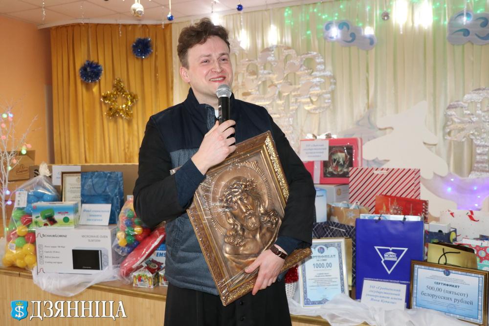 А гости в свою очередь благодарили ребят за возможность окунуться в новогоднюю сказку, возвратиться в далёкое детство и вместе помечтать. От души поздравляли участников новогоднего праздника, желали всем здоровья, мира и благополучия председатель Гродненского областного Совета депутатов Елена Пасюта, председатель Щучинского райисполкома Алексей Садовский, депутат Палаты представителей Национального собрания Республики Беларусь Павел Михалюк, управляющая Фондом социальной защиты населения Министерства труда и социальной защиты Юлия Бердникова, председатель комитета по труду, занятости и социальной защите Гродненского облисполкома Ольга Седельник. С почётной миссией приехали в дом-интернат руководители профсоюзного движения: председатель Республиканского комитета профсоюза работников государственных и других учреждений Сергей Потапенко и лидер областной организации этого профсоюза Елена Береснева, председатель районного объединения профсоюзов и лидер Щучинской организации РОО «Белая Русь» Юрий Пашук, директор ОАО «Василишки» Антон Бурнос, руководители компании «Гродноэнерго». А сколько тёплых эмоций и желания исполнить детские мечты было у волонтёров Купаловского университета, которые приехали в интернат во главе со своим ректором Ириной Китурко! Словом, не перечесть всех замечательных людей, которые сегодня дарили ребятам теплоту своих сердец.