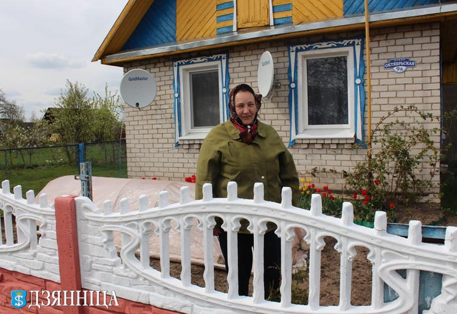 Завіталі мы і ў, так бы мовіць, “старасвецкі” дом Аліны Іванаўны Дзятчык. Хоць і дзявяты дзясятак размяняла былая настаўніца, аднак падворак і навакольную тэрыторыю стараецца падтрымліваць чысцюткай і акуратнай. Вось і яе агароджу, з відам на царкву, асвяжылі прыемныя воку колеры.