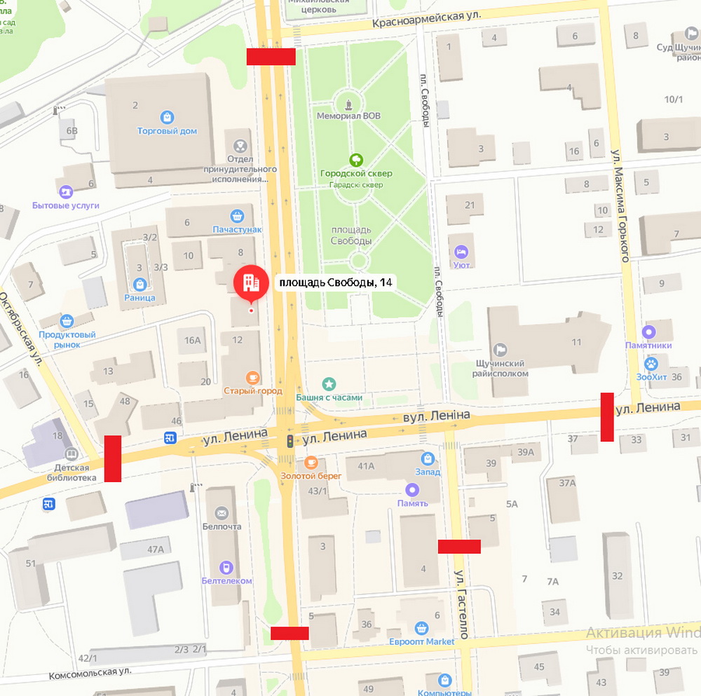 - по улице Ленина (от перекрестка с улицей Октябрьской до перекрестка с улицей Горького).