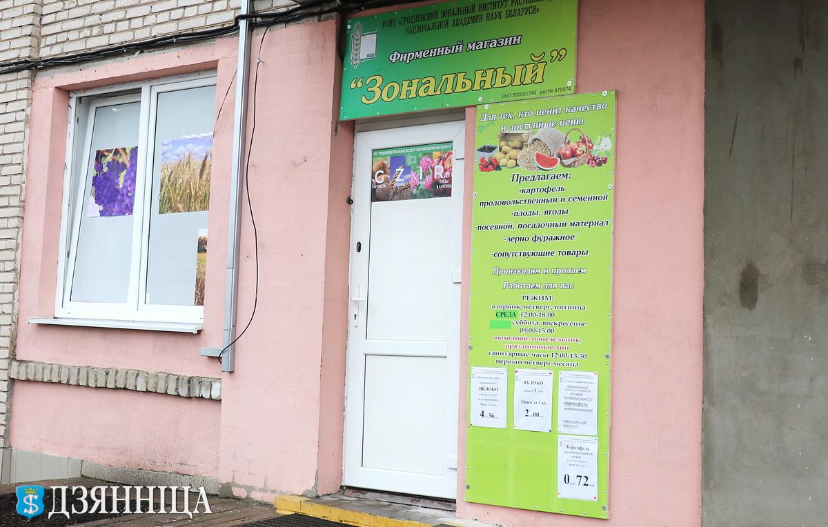 Фирменный магазин "Зональный" Гродненского зонального института растениеводства давно завоевал популярность у щучинщев и жителей района. Широкий ассортимент собственной продукции, а также другие товары привлекают покупателей. Туда спешат за яблоками, картофелем, а в сезон – за саженцами и цветами.