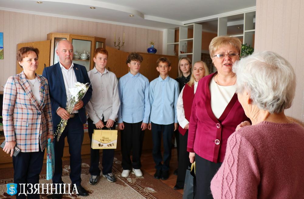 Поздравить ветеранов пришли председатель районного Совета депутатов, председатель Щучинского районного отделения Белорусской партии «Белая Русь» Анна Хведюк, начальник управления по труду, занятости и социальной защите райисполкома Андрей Новицкий, директор ТЦСОН, председатель районной организации Белорусского союза женщин Светлана Шанчук, председатель районного Совета ветеранов Светлана Малюгина, а также учащиеся гимназии. Гости пришли с цветами, подарками и искренними словами благодарности.