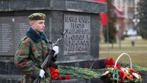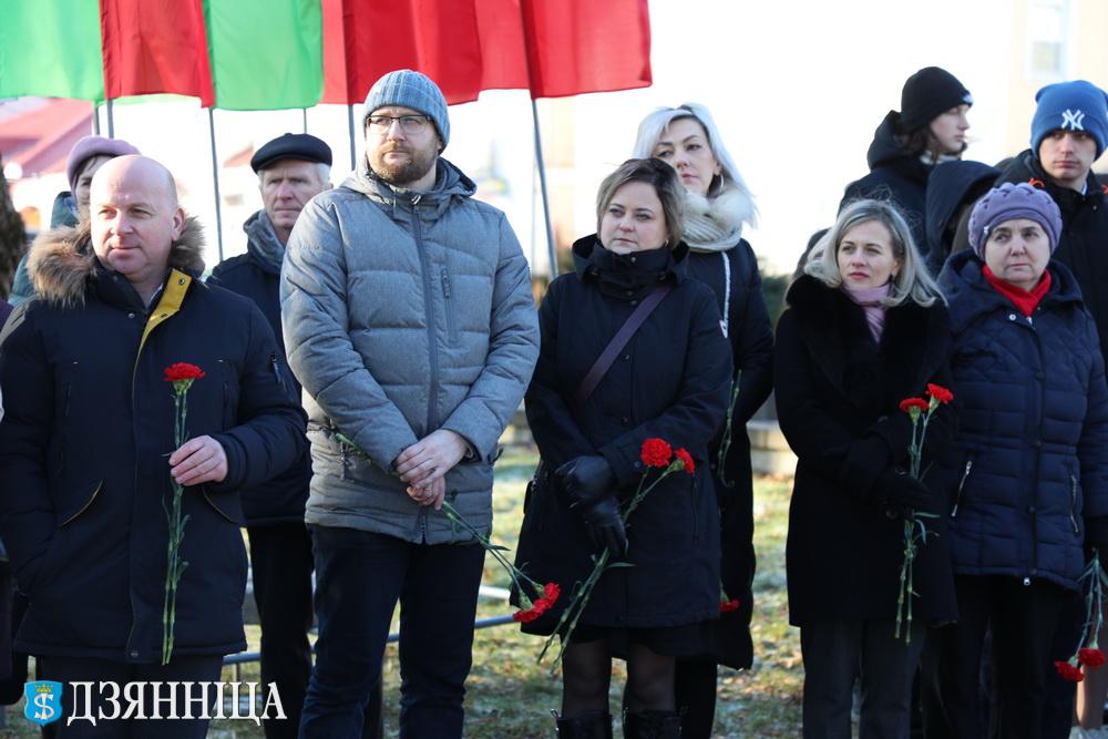 В городском сквере у памятника погибшим воинам и партизанам собрались руководство района, ветераны Вооружённых Сил, представители трудовых коллективов и молодёжь, чтобы принять участие в торжественном митинге, посвящённом Дню защитников Отечества и Вооружённых Сил Республики Беларусь