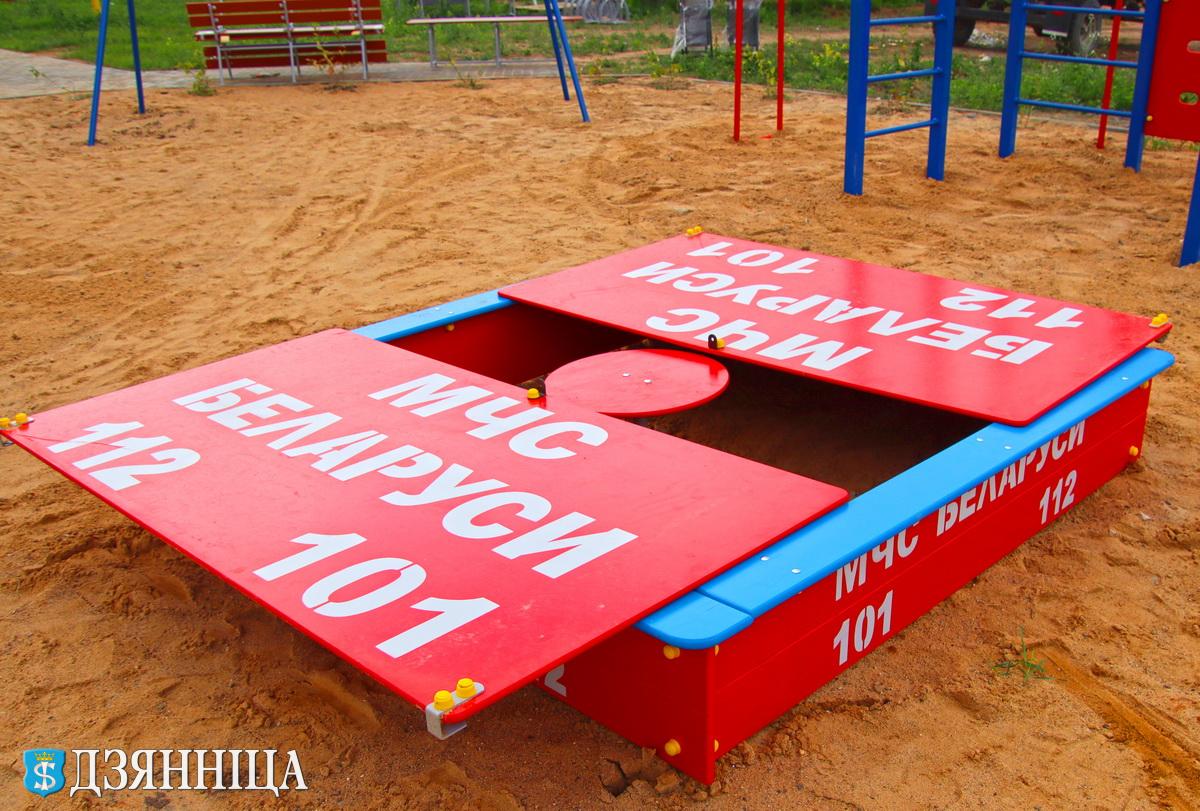 В Щучине в районе строящегося 60-квартирного жилого дома по улице Заводской появилась детская имиджевая площадка в стиле «МЧС»
