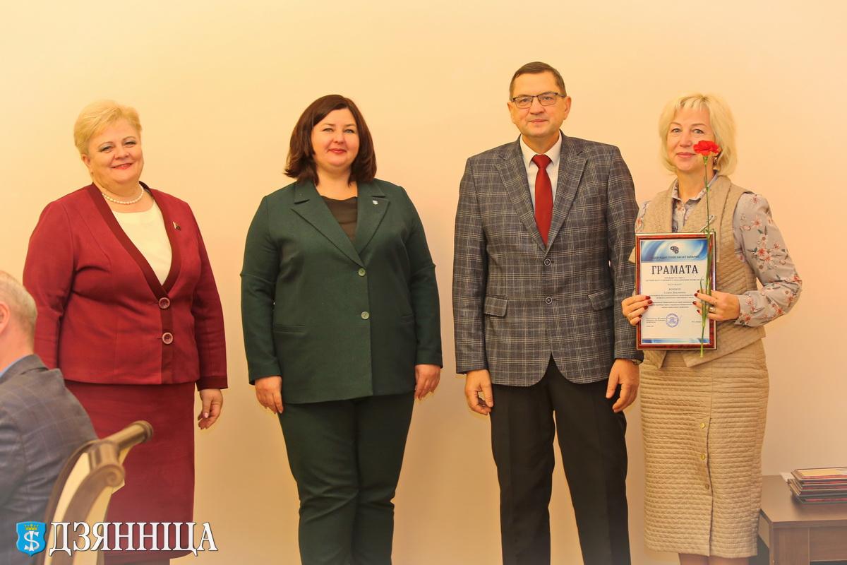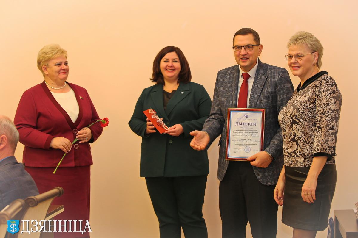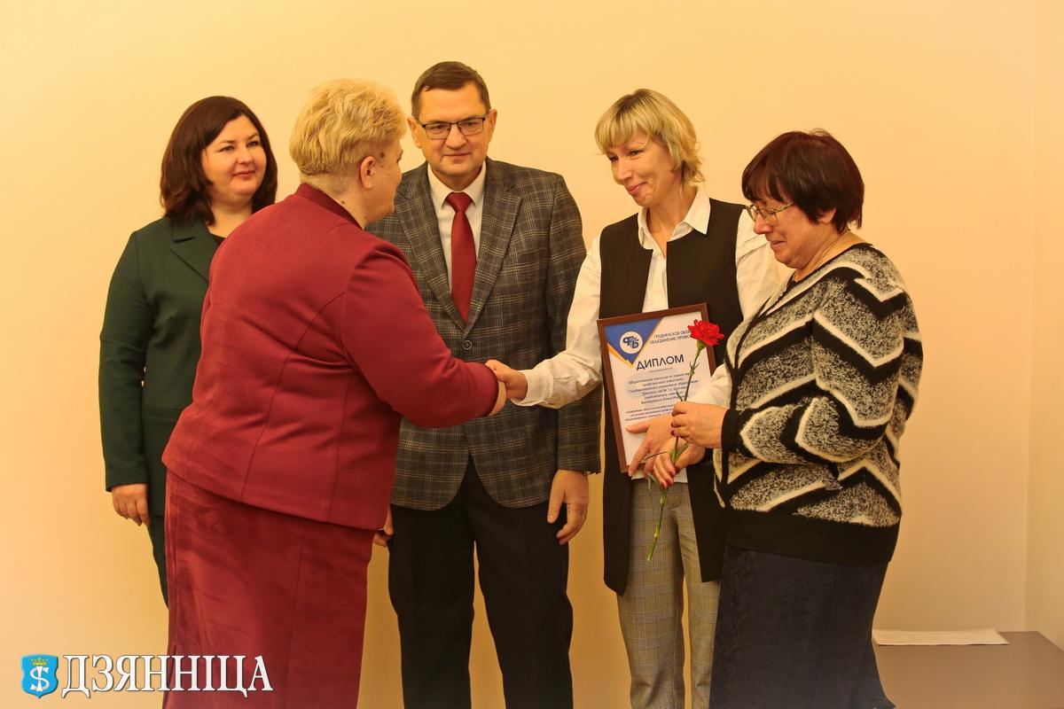 В завершение мероприятия Анна Хведюк, Татьяна Тюсина и Юрий Пашук наградили победителей районного смотра-конкурса на лучшую первичную профсоюзную организацию. Наградами отмечены Марина Дятчик, Светлана Будилович, Светлана Куцкель и Ольга Кириллова.