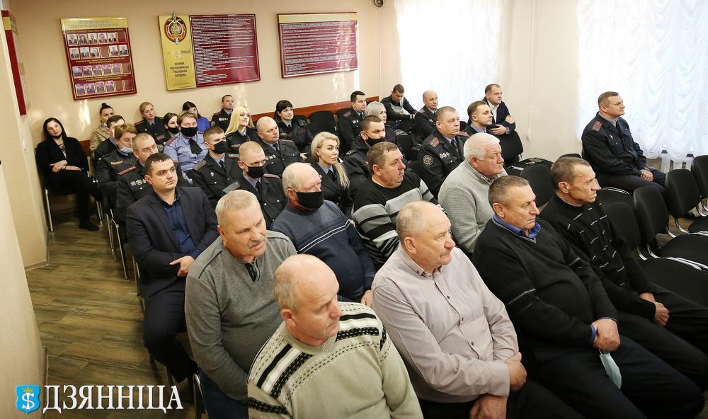 Под аплодисменты зала были вручены памятные знаки “Участник ликвидации аварии на ЧАЭС” ветеранам милиции В.Е. Антоновичу, В.В. Клусу, А.Н. Ковалевскому, Ч.К. Менскому, И.Э. Мысливцу, Ч.Б. Новику, И.Б. Шибутовичу и С.И. Якубашко. Был также отмечен и подполковник милиции в отставке, председатель ветеранской организации М.И. Майко.