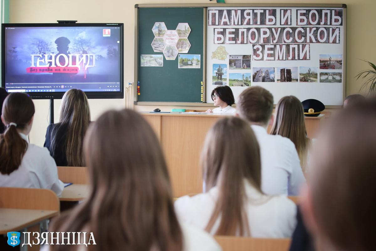 Павел Тарчинский предложил ученикам задуматься, что было бы с Беларусью, если бы мы не помнили историю: «Ужасает то, что фашизм пытается вновь поднять голову. Не в Беларуси, но рядом. На Западе забыли историю, забыли, какой ценой советский народ одержал победу над фашизмом и избавил мир от чудовищного террора. Мы должны знать правду, иначе быть не может. На подрастающем поколении лежит большая ответственность. Ведь во времена, когда всевозможные фейки, ложь и провокация готовы внедриться в неокрепшие умы, важно уметь фильтровать и анализировать поступающую информацию».