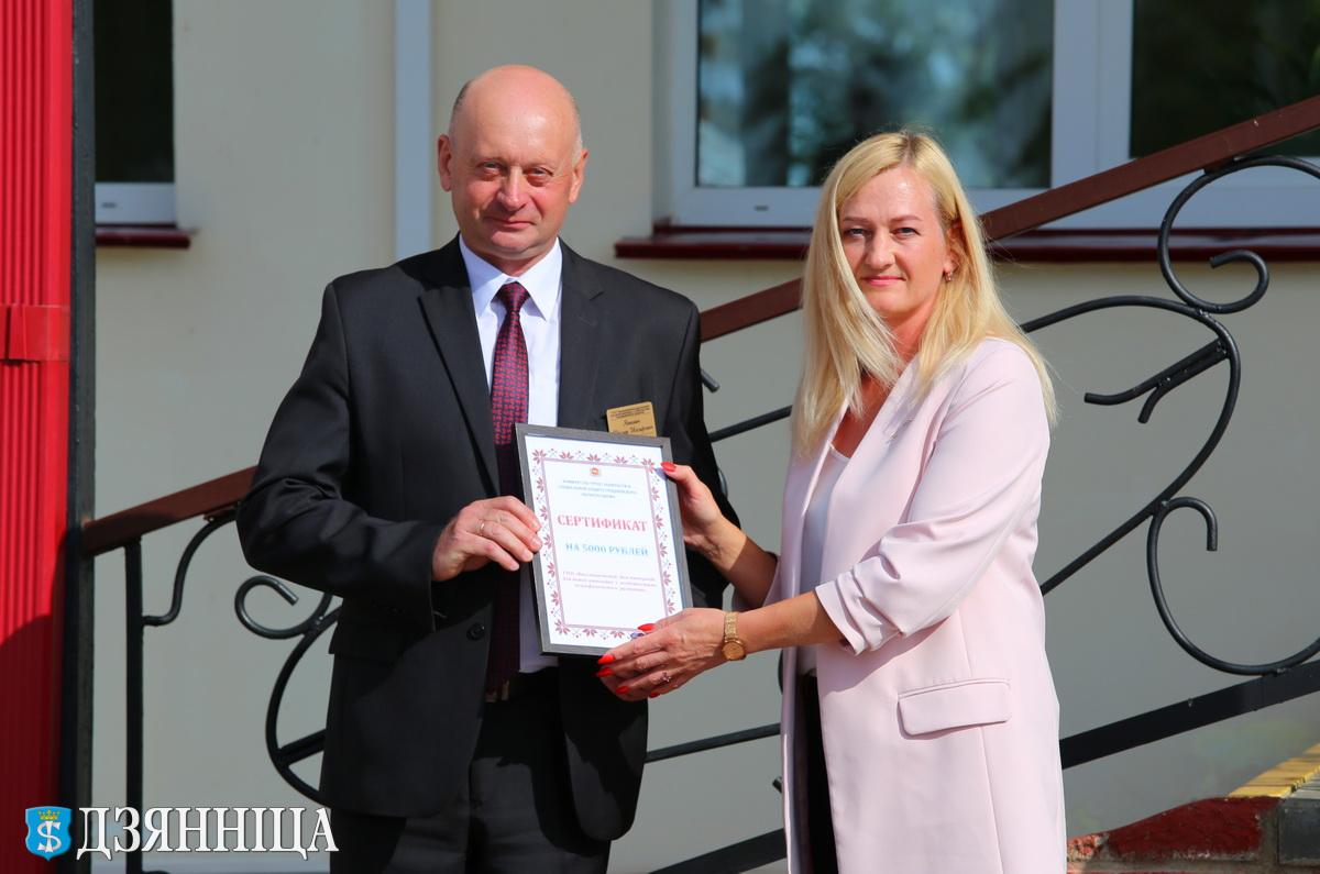 Пасля цёплых пажаданняў Вольга Сядзельнік уручыла дырэктару дома-інтэрната Здзіславу Янкевічу грашовы сертыфікат. Гэтыя сродкі пойдуць на ўмацаванне матэрыяльна-тэхнічнай базы.