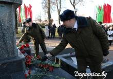 В городском сквере у памятника погибшим воинам и партизанамсобрались руководство района, ветераны Вооружённых Сил, представители трудовых коллективов и молодёжь, чтобы принять участие в торжественном митинге, посвящённом Дню защитников Отечества и Вооружённых Сил Республики Беларусь
